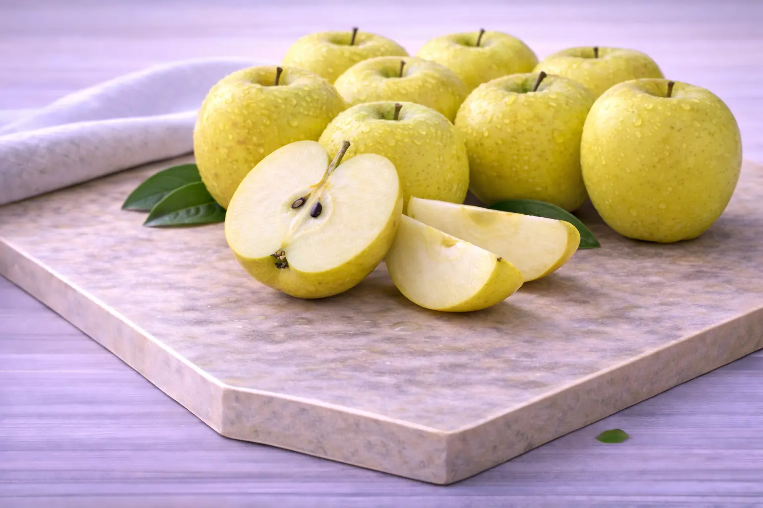 En estado óptimo de maduración es una manzana dorada de forma redondeada que tiene la piel amarillenta brillante y suave. Su color puede ir desde el amarillo dorado al amarillo verdoso. Se caracteriza por tener un sabor dulce, crujiente y ser jugosa en su carne. Es un fruto de tamaño medio grande. Destaca también por contener lenticelas en su piel exterior que son los diminutos puntos negros que permiten que la fruta respire. Es una de las manzanas favoritas de los más pequeños por su grado de azúcar que la convierte en una manzana dulce deliciosa.