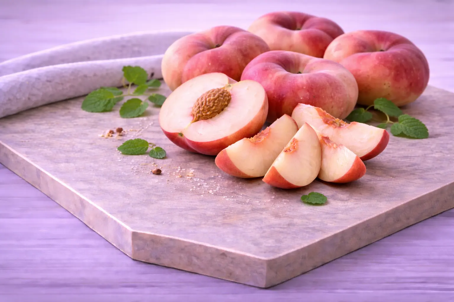 Fruto conocido como melocotón chato en muchos países y es que realmente es una variedad o mezcla de este, más dulce pero compartiendo gran parte de las características y propiedades del melocotón.